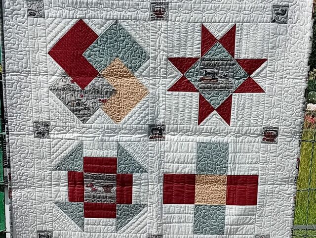 - Fabric: 6 fat quarters (2x light, 2x medium, 2x dark) and 0,5m of backing fabric